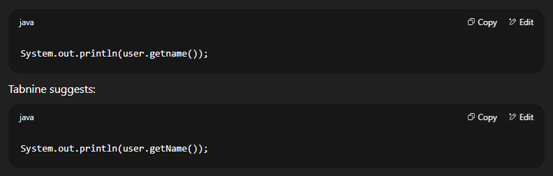 It’s not just about speed — accuracy matters. Tabnine reduces common mistakes like missing brackets, incorrect variable names, or wrong function calls.